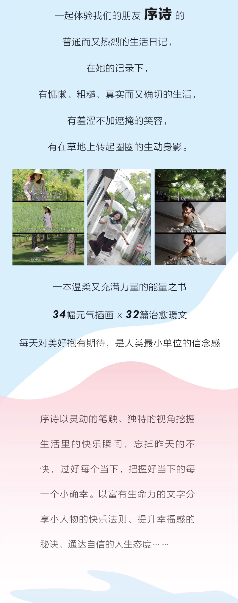 作者序诗以灵动的笔融、独特的视角挖掘生活里的快乐瞬间,忘掉昨天的不快,过好每个当下,把握好当下的每一个小确幸。以富有生命力的文字分享小人物的快乐法则、提升幸福感的秘诀、通达自信的人生态度.………