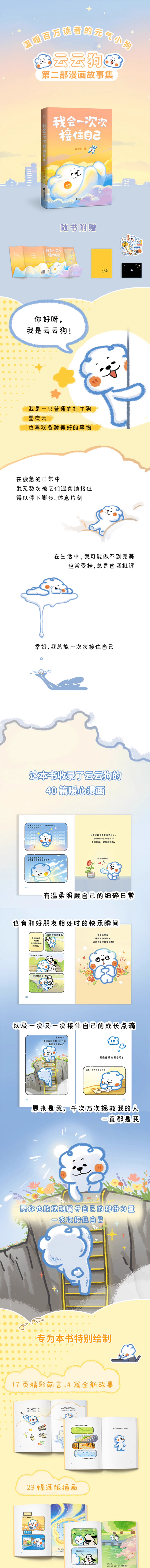 《我会一次次接住自己》是云云狗的第二部漫画故事集,收录了40篇暖心漫画。随书附赠云云狗软萌周边!
