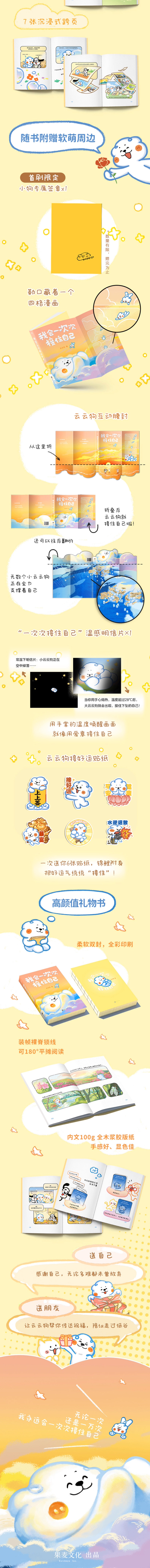 ★ 随书附赠软萌周边,云云狗 接好运贴纸x 6 创意折叠腰封x1 勒口彩蛋漫画 x1 小狗专属签章x1 云云狗 28℃温感明信片x 1