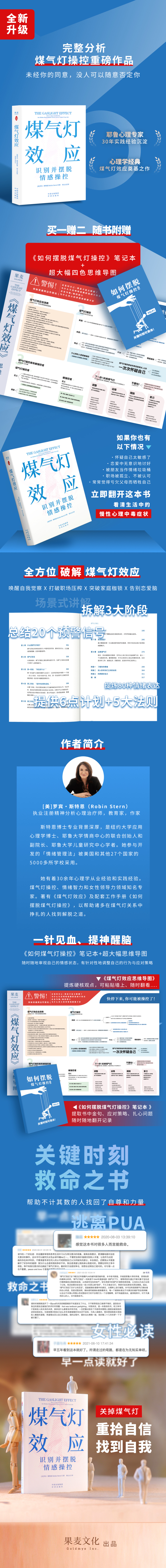 罗宾·斯特恩博士所著的《煤气灯效应》是关于本概念的经典心理学著作,帮助无数的读者找回了自尊。无论是你,还是某个你认识的人正在煤气灯操控中苦苦挣扎,这本书都能够帮助你不断反思、重新梳理并调整这段关系,或者彻底结束。同时,你一定要相信自己,你有能力、有权利改变这一切,重获新生,拥有更加美好的亲密关系。