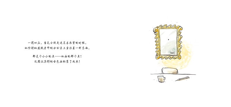 这是发生在作者彼德.雷诺兹身上的真实故事。就像小林校长经常对小豆豆说“你真是一个好孩子”一样,马特森老师鼓励小彼德“画一笔”,才有了了不起的“点”。